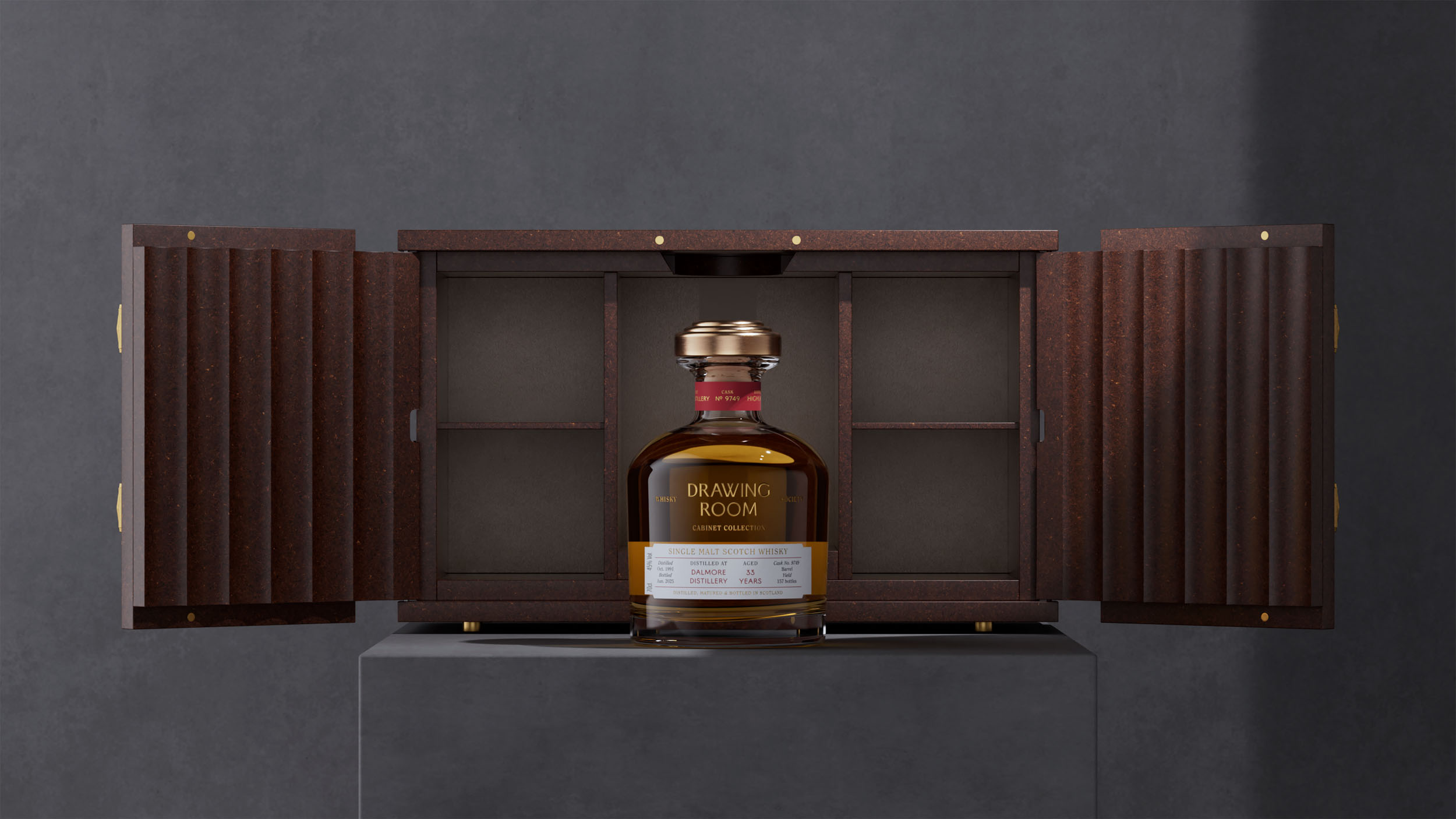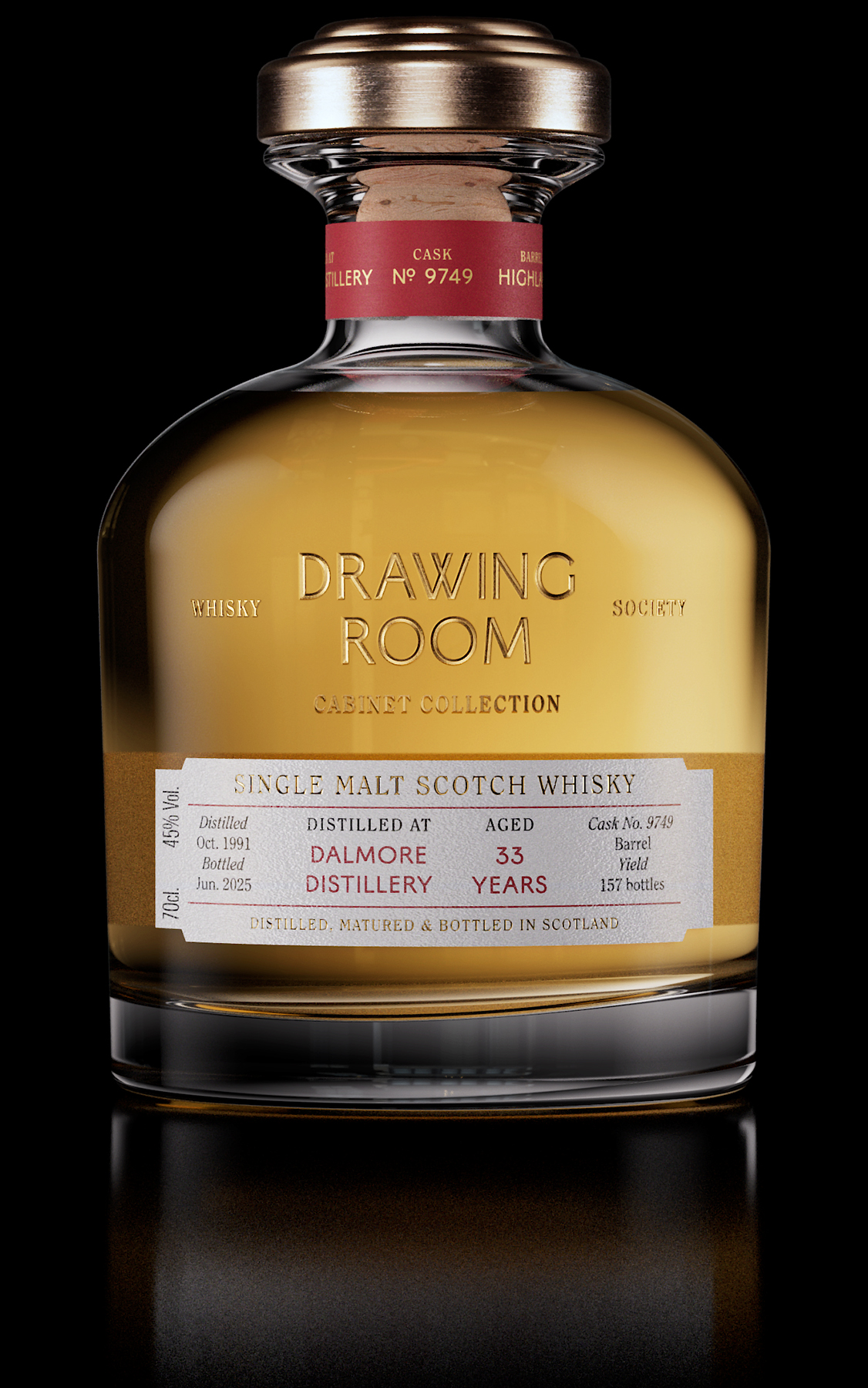 This rare Dalmore single cask from the Cabinet Collection reveals a palate of dark chocolate, roasted coffee, and a subtle hint of spice, evolving into a long finish of honey, salted plum, and tropical fruit. Bottled at natural cask strength, it epitomises Dalmore’s masterful heritage and time-honoured craftsmanship.