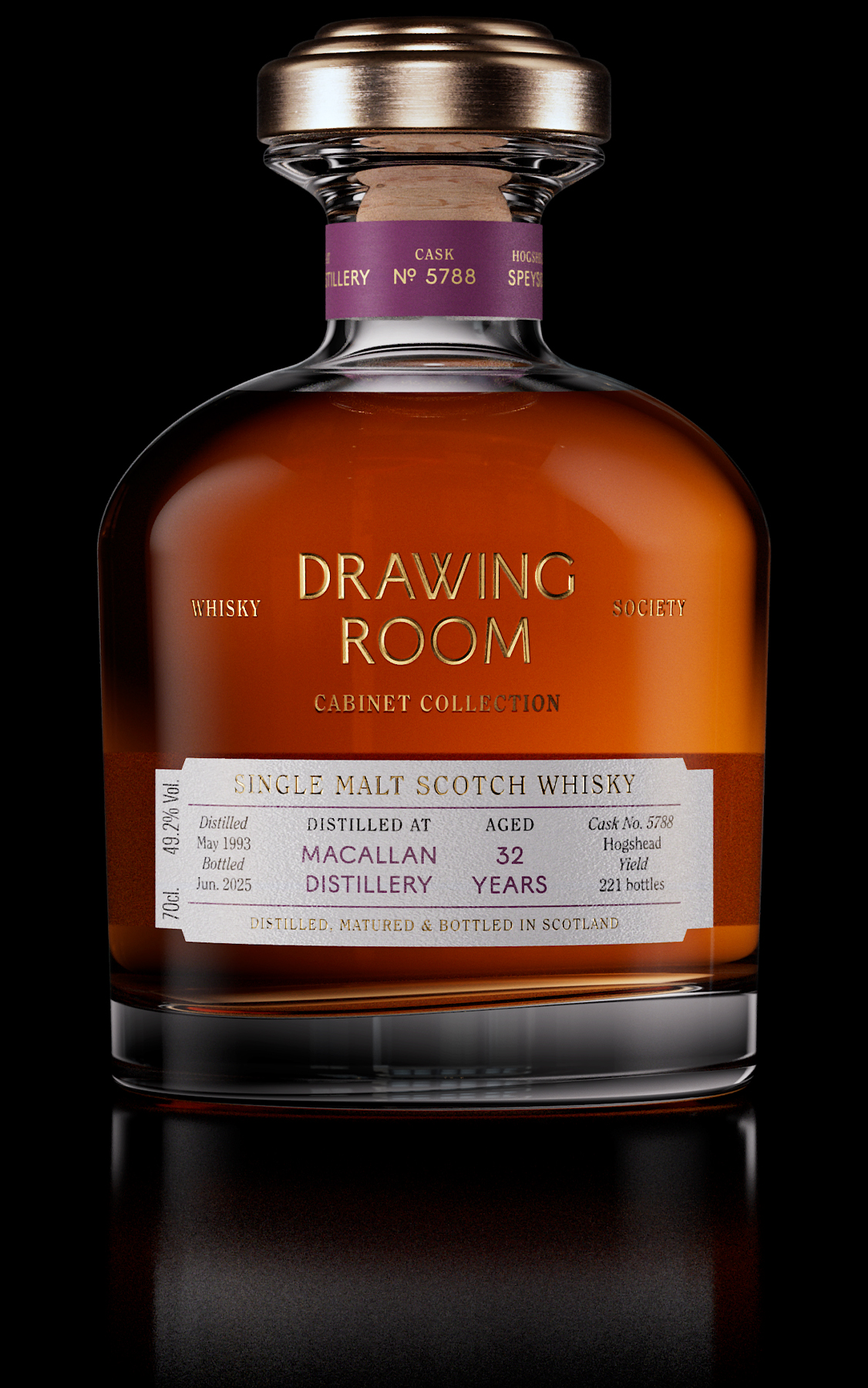 This rare Macallan 1993 single cask from the Cabinet Collection reveals caramelised nuts, poached pear, and spiced toffee, leading to a long finish of nutmeg and honeyed pastry. Bottled at natural cask strength, this exceptional 32-year-old whisky showcases Macallan’s sherry influence with depth and richness worth savouring.