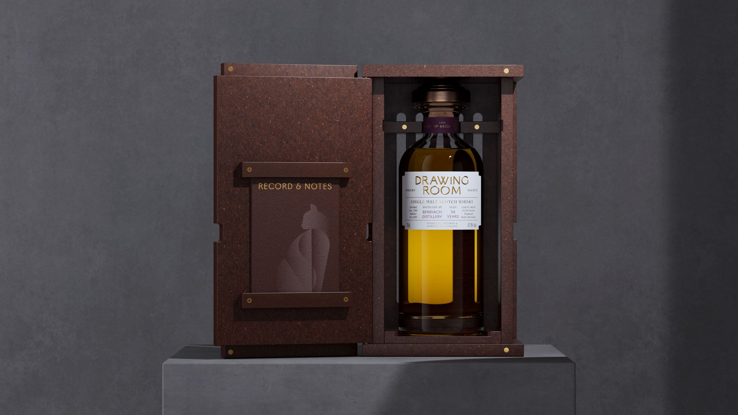 Single malt whiskies distilled in Benriach Distillery of Highland and Bowmore Distillery of Islay, aged for three dacades.